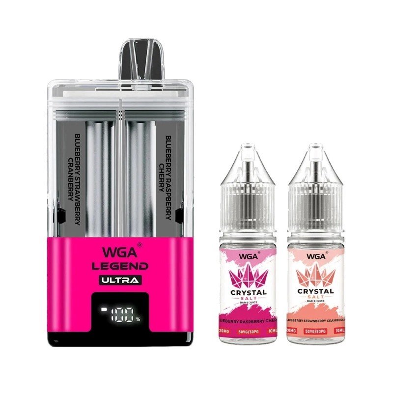 WGA Legend Ultra 30KÂ Disposable Vape features 22ml e-juice in total, 2 flavors and at most 30k puffs.